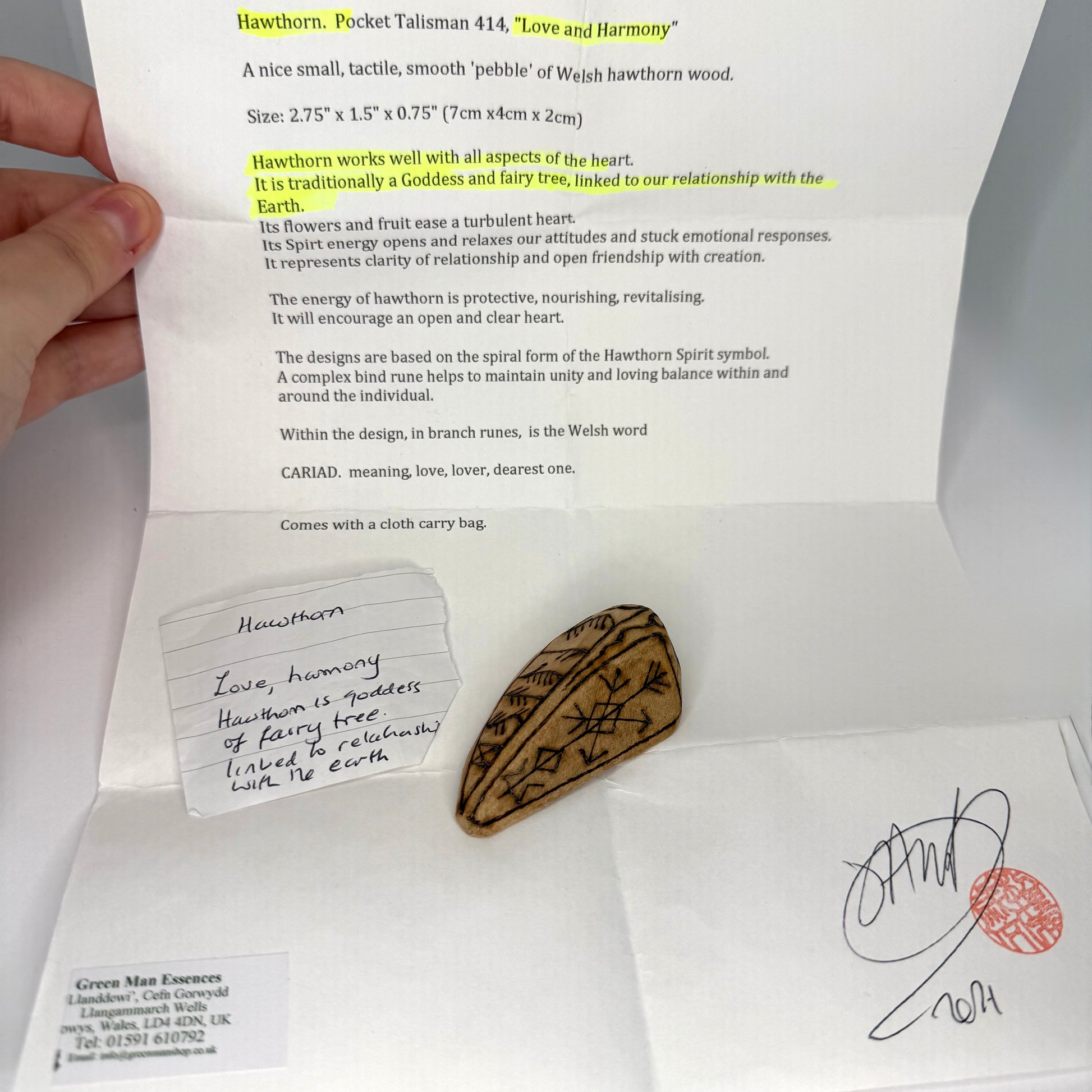 Hawthorn. Pocket Talisman, "Love and Harmony"